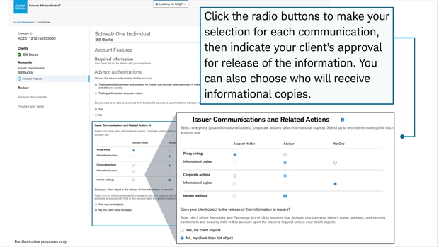 Now, when you're opening a new account with digital onboarding, you can specify different parties to receive or take action on various issuer communications.