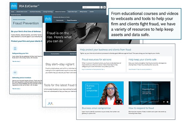 - The Cybersecurity Resource Center's fraud page on Schwab Advisor Center, as well as the newly updated cybersecurity page on advisorservices.schwab.com; both feature educational PDFs, videos, and customizable brochures that you can update with your firm's branding and distribute to your clients